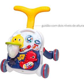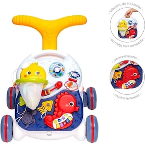Sentado, o pequeno pode brincar com o tabuleiro ou mesinha de atividades. Quando a criança já consegue se equilibrar, o andador incentiva os seus primeiros passinhos. Os sons, cores e formas vão fazer do aprendizado uma grande diversão.