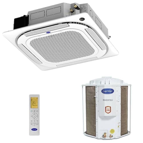 O Ar Condicionado Split Cassete Carrier XPower 48000 BTUs Frio Inverter combina potência e eficiência para grandes espaços. Oferece resfriamento uniforme com sua função oscilante e quatro velocidades de ventilação. A operação silenciosa garante conforto, enquanto o Gold Fin e a proteção na placa inverter asseguram durabilidade, especialmente em regiões costeiras.
