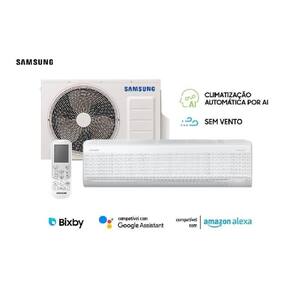 O ar-condicionado Split Inverter Samsung WindFree AI 9000 BTUs Quente/Frio 220V oferece conforto, economia e tecnologia. Com a tecnologia WindFree, o ar é distribuído por 23.000 microfuros, eliminando o desconforto do vento direto. Equipado com inteligência artificial, ajusta automaticamente a temperatura conforme as condições internas e externas. Conexão Wi-Fi via SmartThings permite controle pelo smartphone ou por comandos de voz com Alexa, Google Assistente e Bixby. O modo Welcome Cooling climatiza o ambiente antes da sua chegada. Com economia de até 77% de energia, compressor Digital Inverter e funcionamento silencioso 16 dB, é ideal para quartos e salas de estudo. A função Good Sleep ajusta a climatização para um sono confortável. Filtro antibacteriano elimina até 99% das bactérias e a função Auto Clean mantém o aparelho limpo. A serpentina de cobre oferece maior durabilidade, e o gás refrigerante R32 contribui para o meio ambiente. Design sofisticado com display invisível se integra ao ambiente.