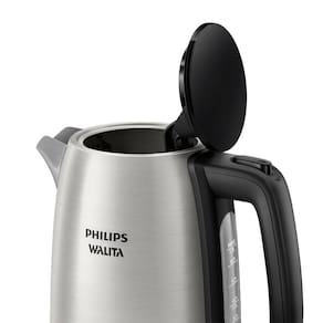 Chaleira elétrica Philips Walita HD9350 Série 3000 Inox com capacidade de 1.7L, potência de 1850W, desligamento automático, base com rotação de 360°, filtro com microfuros e sistema de segurança contra funcionamento a seco.Características