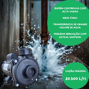 MOTOBOMBA CENTRIFUGA 1,0CV WDM MONOFÁSICA 127/220V FEITA EM TERMOPLASTICO,