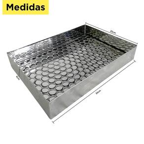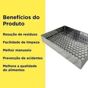 Diferenciais: Estrutura em inox que evita corrosão; Grades com passagens pequenas para escorrer apenas o óleo; Fácil de limpar e utilizar; Versátil, amplamente utilizado em cozinhas e barracas de rua.