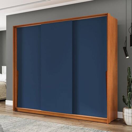 O(a) Guarda-Roupa Casal Porto 3 Portas 4 Gavetas Freijó/Azul - Politorno é produzido em MDF e MDP na escala de brilho Semi-Fosco, e possui um grau de dificuldade de montagem: Médio.