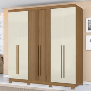 O guarda roupas Londres possui um design funcional e elegante. Ele conta com 6 portas, proporcionando amplo espaço para armazenamento. Possui 2 gavetas com corrediças telescópicas resistentes, que garantem um deslizamento silencioso e suave. O modelo inclui ainda 8 prateleiras, perfeitas para organizar roupas dobradas, sapatos ou outros itens. Os 3 cabideiros, ideais para pendurar peças mais longas, como vestidos e camisas. Seu destaque fica nos detalhes em impressão 3D imitando ripado que adicionam um toque moderno e sofisticado ao design, enquanto a pintura UV de alta qualidade garante durabilidade e resistência, mantendo a beleza do móvel por muito tempo. Esse tipo de acabamento também ajuda a proteger a superfície do guarda roupas contra riscos e desgastes. Com um estilo de fácil combinação em diferentes ambientes, ele é a peça chave para um quarto bem organizado, com um toque moderno e elegância.
