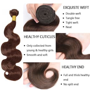 Informações do produto do pacote de cabelo humano Marca: HrceYocr. Material do cabelo: mechas de cabelo Remy virgem 100% brasileiro. Qualidade do cabelo: trama dupla à máquina, saudável e limpa, brilho natural, grosso, completo, macio, sem emaranhados, sem queda, sem cheiro. Peso e comprimento do cabelo: 95-105 g/pacote, 8-86 polegadas opcional, 2 pacotes/pedido Cor do cabelo: #4 Cabelo humano castanho chocolate Textura do cabelo: cabelo humano ondulado Vantagem do cabelo: pode repentear o cabelo como você gosta. Perfeito para uso diário, como casamento, encontros, festas, feriados Dicas de cuidados com o cabelo 1. Penteie o cabelo suavemente com pente de dentes largos para não embaraçar antes de lavar, adicione xampu suave à água morna e mergulhe a peruca nele. Lave o cabelo suavemente e lave para limpar. Aplique o condicionador na água morna e deixe a peruca de molho por pelo menos 10 minutos. Deixe o cabelo secar naturalmente, depois mantenha o estilo com a mão e coloque a peruca no suporte. 2. Lave sua peruca regularmente, lave o cabelo pelo menos uma vez por semana. Não use xampu excessivamente no cabelo, isso causará ressecamento. Se o seu cabelo estiver pesado ou oleoso, use um xampu clareador. Perguntas frequentes sobre mechas de cabelo humano P1: O cabelo pode ser tingido ou descolorido? A1: Sim, nosso cabelo é 100% humano pode ser tingido, descolorido e permanente. No entanto, frequentemente tingidos e permanentes prejudicam o cabelo e até mesmo destroem o cabelo. Sugerimos que você vá ao cabeleireiro profissional para ajudá-lo. P2: Cheiro de cabelo? A2: não tem cheiro, nosso cabelo é 100% humano, sem tratamento químico, mas pode ter cheiro de xampu de fábrica, de qualquer forma, ele vai levantar o cheiro do seu xampu e condicionador logo após a co-lavagem. P3: Como evitar emaranhamento/queda? A3: lavar o cabelo regularmente com pente dental com xampu e condicionador de alta qualidade. Consulte sempre seu estilista antes de tentar qualquer técnica de estilo que você não tenha certeza. - Material dos mechas de cabelo humano: 100% cabelo Remy virgem brasileiro não processado, cortado diretamente de doadores jovens, macio e sedoso, limpo e saudável. - Vantagem do cabelo humano: trama de máquina dupla, densidade total, sem queda. Pode ser enrolado, descolorido, tingido e modelado, muito macio, macio. O cabelo virgem de boa qualidade permite que você estilize seu cabelo de várias maneiras para mostrar sua beleza e charme. - Cor das extensões de cabelo humano: # 4 castanho chocolate ondulado mechas cabelo humano. - Comprimento e peso do cabelo: 8-34 polegadas opcional; 100 (+/-5g) pacote, 2 pacotes/pedido. - Perfeito para todas as ocasiões: o cabelo ornamentado torna-o perfeito no dia a dia, casamento, encontros, festas temáticas, cosplay e qualquer outra ocasião, deixa você mais confiante e charmosa.
