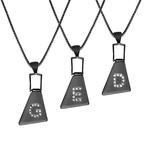 - Colar de Letras Trapézio Cravejado de Zircônia Folheado Na Cor Negro