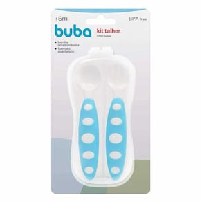 Kit Talher com Estojo para Bebê - Colher e Garfo - Azul - Buba: O Kit Talher com Estojo da Buba é ideal para a hora da papinha. Super prático para os cuidados com a alimentação dos pequenos. Composto por colher e garfo com bordas arredondadas, com design moderno e anatômico. Vem com estojo para guardar os talheres e transportar de forma higiênica para passeios e viagens. Também é perfeito para incentivar a autonomia do bebê ao se alimentar. São 100% atóxicos, livres de BPA e Ftalatos. • Detalhes: - Colherzinha e Garfinho para bebês - Bordas arredondadas - Muito fácil de higienizar - Livre de BPA e ftalatos - Produto 100% atóxico INFORMAÇÕES: • Produto: Kit Talher com Estojo • Marca: Buba • Cor: Azul • Tipo: Estojo com Colher e Garfinho de bebê • Categoria: Hora do Papa / Talheres para Bebês • Tamanho (C x A x L): - Talheres: 03 x 14 x 03 cm - Case: 7.5 x 16 x 03 cm • Conteúdo: 1 colher, 1 garfo e 1 Estojo • Idade recomendada: para bebês a partir de 06 meses de idade ESPECIFICAÇÕES: • Referência: 10687 • Código de Barras: 7908103706870 • Embalagem (C x A x L): ? 12 x 22 x 04 cm • Embalagem (Peso): 0.095 Kg • Material / Composição: Livre de BPA e Ftalatos (100% atóxico) - Case: 100% Polipropileno - Cabo: 50% Borracha Termoplástica e 50% Polipropileno - Garfo e Colher 100% Polipropileno • Certificado: Órgãos Autorizados - OCP´S (Organismos de Certificação de Produtos) AVISO: - As imagens são meramente ilustrativas - Os tamanhos, pesos e medidas são aproximados - As cores e estampas dos produtos podem ter variações - As informações são de responsabilidade do fabricante ou fornecedor