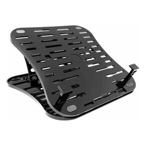 Ele possui oito posições ajustáveis que permitem a elevação do notebook até 21,1 cm, contribuindo para uma postura correta enquanto trabalha ou estuda. Sua superfície antiderrapante garante que o equipamento permaneça firme, evitando qualquer movimento indesejado durante o uso. Compacto e leve, com apenas 0,5 kg, o suporte é fácil de transportar, perfeito para quem se movimenta entre diferentes ambientes.