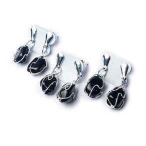 Este brinco combina o brilho intenso da Obsidiana Negra rolada e polida com um design chique e artesanal: um delicado cesto amarradinho, montado manualmente. Um acessório com presença forte e elegante, ideal para quem busca estilo com proteção energética e um toque de mistério. A base metálica recebe acabamento prateado sobre metal niquelado, criando um contraste sofisticado que realça o negro profundo e vítreo da pedra. Detalhes da Peça\nNome da Pedra: Obsidiana Negra Natural\nCor: Preto profundo com brilho vítreo (vide fotos reais)\nTipo de Brinco: Tarraxa com peça em pedra amarrada na cesta.\nCorte: Rolado polido – formato orgânico e fluido\nClaridade: Vítreo opaco\nMedidas das Peças: 25 x 7 mm (aproximadas)\nPeso total das peças: 25 quilates (podendo variar)\nMetal: Niquelado com acabamento prateado\nOrigem: Montagem artesanal em Curvelo – MG\nDestaques\nFeito à mão, com acabamento exclusivo e toque artesanal\nObsidiana Negra: pedra de proteção espiritual, limpeza energética e aterramento\nCombina rusticidade com elegância em um acessório versátil\nIdeal para o uso diário ou como presente com propósito\nLeve mais proteção, estilo e autenticidade para o seu visual com esta joia feita com alma.Artesanal • Protetor • Estiloso Marca: Não Informado