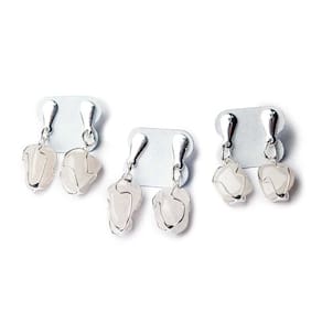 Este brinco combina a beleza serena do Quartzo Leitoso rolado e polido com um design chique e artesanal: um delicado cesto amarradinho, montado manualmente. Um acessório com energia calma e elegante, ideal para quem busca estilo com delicadeza, proteção suave e boas vibrações. A base metálica recebe acabamento prateado sobre metal niquelado, criando um contraste sutil que valoriza os tons brancos leitosos e translúcidos da pedra. Detalhes da Peça