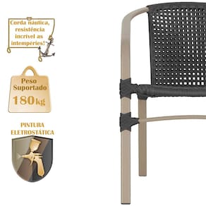 Produto conhecido como: Cadeira Florida, Cadeira de alumínio com corda náutica, Cadeira com pintura eletrostática, Cadeira para área externa, Cadeira resistente ao tempo, Cadeira moderna para varanda, Cadeira de design contemporâneo, Cadeira para jardim ou piscina