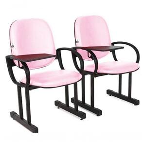 01 Cadeira para Auditório, Cinemas, Teatros, Escolas e Faculdades com Prancheta Linha Dallas Auditório - Tonalidade da Cor do Assento e Encosto: Rosa Claro - Marca: Design Office Móveis - Revestimento do Assento e Encosto: Material Sintético