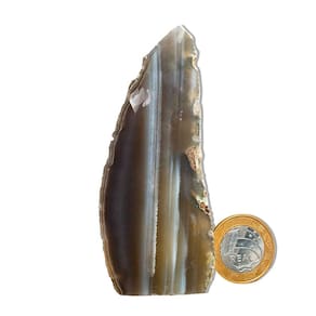 Ágata Natural – Pedra Natural de Qualidade para Decoração e Bem-Estar Transforme seu ambiente com a energia única e equilibrada dos Geodos de Ágata Natural. Perfeitas para decoração, práticas esotéricas e como um presente especial, essas pedras naturais trazem um toque único e harmonioso para sua casa ou espaço de trabalho. Características do Produto:\nNome: Ágata Natural Tamanho das Pedras: Entre 7 a 12 cm (tamanhos podem variar conforme o estoque disponível) Cor: Variedades naturais de cores, como tons de bege, cinza, marrom e preto, com variações de brilho e texturas. Peso Médio por Pedra: 150 a 200g Qualidade: Comum (ideal para quem busca pedras naturais autênticas com uma boa relação custo-benefício)\nDestaques:\nPedras Naturais: Cada geodo de Ágata Natural é uma peça única, extraída diretamente do garimpo, com formas e tonalidades exclusivas. As pedras podem apresentar pequenas inclusões, características que tornam cada peça ainda mais especial e autêntica. Acabamento Polido e Base Serrada: A face da pedra é polida para realçar seu brilho, e a base serrada garante que ela fique estável, podendo ser facilmente exibida, seja em prateleiras, mesas ou como peça decorativa. Energia Equilibrante e Protetora: A Ágata Natural é conhecida por suas propriedades de equilíbrio energético e proteção, sendo ideal para quem busca promover um ambiente harmonioso e energicamente equilibrado. Variações Naturais: Por ser uma pedra 100% natural, as cores, padrões e formatos podem variar, garantindo que cada peça seja única e exclusiva. Tratamento com Óleo Mineral: As pedras são tratadas com óleo mineral para preservar seu brilho e beleza naturais por mais tempo.\nImportante:\nTingimento Parcial: O produto pode ter até 80% de tingimento, prática comum no mercado de Ágata para realçar as cores naturais da pedra e garantir um visual encantador. Fotos Ilustrativas: As imagens são representativas e podem variar conforme o lote e as características individuais de cada pedra.\nPor que comprar conosco?\nProduto Único e Exclusivo: Ao adquirir um Geodo de Ágata Natural, você leva para casa uma peça única, cheia de charme e elegância natural. Qualidade e Preço Acessível: Oferecemos pedras naturais de alta qualidade a preços justos, ideais para quem busca algo especial sem comprometer o orçamento. Comodidade na Compra: Garantimos uma entrega rápida e eficiente, para que você possa aproveitar sua nova peça de decoração o quanto antes.\nTransforme Seu Espaço com a Beleza e Energia da Ágata Natural! Compre Agora! Esse é o anúncio alterado para a Ágata Natural, destacando suas características autênticas e energéticas. Caso precise de mais ajustes ou detalhes, estou à disposição!