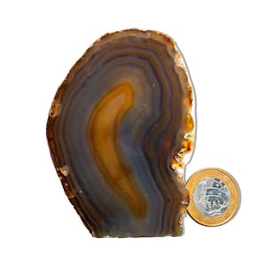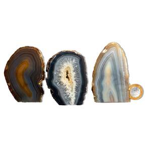 Ágata Natural – Pedra Natural de Qualidade para Decoração e Bem-Estar Transforme seu espaço com a beleza única e a energia suave dos Geodos de Ágata Natural. Essas pedras naturais são ideais para quem busca dar um toque especial à decoração da casa ou para quem deseja utilizar em práticas esotéricas, trazendo equilíbrio e harmonia ao ambiente. Características do Produto:\nNome: Ágata Natural Tamanho das Pedras: Entre 7 a 12 cm (tamanhos podem variar conforme o estoque disponível) Cor: Variações naturais de cores, incluindo lilás, roxo e tons suaves, com brilho sutil Peso Médio por Pedra: 450 a 500g Qualidade: Comum (ideal para quem busca pedras naturais acessíveis com ótimo custo-benefício)\nDestaques:\nPedras Naturais: Cada geodo é uma peça única, extraída diretamente do garimpo, com tonalidades e formas exclusivas. As pedras podem apresentar pequenas inclusões, características que as tornam ainda mais autênticas. Acabamento Polido e Base Serrada: A face da pedra é polida, e a base serrada garante que a pedra fique firme e estável, perfeita para ser exibida em prateleiras ou mesas decorativas. Energia Positiva e Harmonia: A Ágata Natural é conhecida por suas propriedades de equilíbrio emocional e tranquilidade, tornando-se uma excelente opção para quem busca um ambiente sereno e acolhedor. Variações Naturais: Como se trata de uma pedra natural, cada geodo apresenta padrões e cores diferentes, garantindo que cada peça seja única e exclusiva. Tratamento com Óleo Mineral: As pedras são tratadas com óleo mineral para manter seu brilho e beleza naturais por mais tempo.\nImportante:\nTingimento Parcial: O produto pode ter até 80% de tingimento, prática comum no mercado de Ágata para realçar suas cores naturais. Fotos Ilustrativas: As imagens são representativas e podem variar conforme o lote e as características das pedras.\nPor que comprar conosco?\nProduto Único e Exclusivo: Cada Geodo de Ágata Natural é uma peça única, perfeita para decoração e para quem valoriza a energia das pedras naturais. Qualidade e Preço Justo: Oferecemos pedras naturais de qualidade com um preço acessível, ideal para quem deseja investir em itens exclusivos sem comprometer o orçamento. Entrega Rápida e Segura: Garantimos a entrega eficiente e a qualidade do produto, para que possa desfrutar de sua nova peça o mais rápido possível.\nCompre Agora e Traga Harmonia para o Seu Ambiente com Geodos de Ágata Natural! Por que comprar na Distribuidora Cristais de Curvelo? Compromisso com o Meio Ambiente: Priorizamos a sustentabilidade, utilizando 90% de embalagem reciclável e grande parte biodegradável. Nossos garimpos seguem rigorosamente as normas ambientais estabelecidas pelas leis vigentes, assim como nossas lapidações. Além disso, adotamos práticas de reciclagem de água, aproveitamento de retalhos de pedras e uso de discos diamantados, com a meta de atingir 100% de reciclagem em nossos processos. Marca: CristaisdeCurvelo