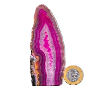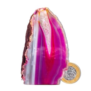 Ágata Rosa – Pedra Natural de Qualidade para Decoração e Bem-Estar Transforme seu espaço com a beleza única e a energia suave dos Geodos de Ágata Rosa. Essas pedras naturais são ideais para quem busca dar um toque especial à decoração da casa, ou para quem deseja utilizar em práticas esotéricas, trazendo equilíbrio e harmonia ao ambiente. Características do Produto:\nNome: Ágata Rosa Tamanho das Pedras: Entre 7 a 12 cm (tamanhos podem variar conforme o estoque disponível) Cor: Rosa Peso Médio por Pedra: 350 a 400g Qualidade: Comum (ideal para quem busca pedras naturais acessíveis com ótimo custo-benefício)\nDestaques:\nPedras Naturais: Cada geodo é uma peça única, extraída diretamente do garimpo, com tonalidades e formas exclusivas. As pedras podem apresentar pequenas inclusões, características que as tornam ainda mais autênticas. Acabamento Polido e Base Serrada: A face da pedra é polida, e a base serrada garante que a pedra fique firme e estável, perfeita para ser exibida em prateleiras ou mesas decorativas. Energia Positiva e Harmonia: A Ágata Rosa é conhecida por suas propriedades de equilíbrio emocional e tranquilidade, tornando-se uma excelente opção para quem busca um ambiente sereno e acolhedor. Variações Naturais: Como se trata de uma pedra natural, cada geodo apresenta padrões e cores diferentes, garantindo que cada peça seja única e exclusiva. Tratamento com Óleo Mineral: As pedras são tratadas com óleo mineral para manter seu brilho e beleza naturais por mais tempo.\nImportante:\nO produto é 80% tingido, uma prática comum no mercado de Ágata para realçar suas cores naturais. As fotos são ilustrativas e podem variar conforme o lote e as características das pedras.\nPor que comprar conosco?\nProduto Único e Exclusivo: Cada Geodo de Ágata Rosa é uma peça única, perfeita para decoração e para quem valoriza a energia das pedras naturais. Qualidade e Preço Justo: Oferecemos pedras naturais de qualidade com um preço acessível, ideal para quem deseja investir em itens exclusivos sem comprometer o orçamento. Entrega Rápida e Segura: Garantimos a entrega eficiente e a qualidade do produto, para que possa desfrutar de sua nova peça o mais rápido possível.\nCompre Agora e Traga Harmonia para o Seu Ambiente com Geodos de Ágata Rosa! Por que comprar na Distribuidora Cristais de Curvelo? Compromisso com o Meio AmbientePriorizamos a sustentabilidade, utilizando 90% de embalagem reciclável e grande parte biodegradável. Nossos garimpos seguem rigorosamente as normas ambientais estabelecidas pelas leis vigentes, assim como nossas lapidações. Além disso, adotamos práticas de reciclagem de água, aproveitamento de retalhos de pedras e uso de discos diamantados, com a meta de atingir 100% de reciclagem em nossos processos. Marca: CristaisdeCurvelo