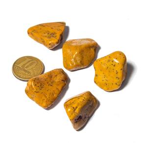 Jaspe Amarelo Rolado Natural – Pedra Esotérica para Energia, Proteção e Sorte. Descrição do ProdutoJaspe Amarelo Rolado, uma pedra natural de garimpo, cuidadosamente polida para realçar seu brilho e beleza. Ideal para uso em práticas esotéricas, como tarô, meditação, feng shui, proteção espiritual, energização de ambientes ou para confecção de pingentes artesanais com gaiola ou amarração. Benefícios do Jaspe Amarelo:\nEstimula a energia vital e a força interior\nAuxilia na proteção espiritual e clareza mental\nUtilizada em rituais de sorte e equilíbrio emocional\nCaracterísticas da Pedra\nNome: Jaspe Amarelo\nCor: Amarelo com rajadas marrons\nCorte: Rolado para maior brilho\nBrilho/Claridade: Opaco com brilho intenso\nTamanho Médio: Aproximadamente 20 mm\nPeso Médio: 20 g (variações naturais conforme o estoque)\nObservações Importantes\nImagem meramente ilustrativa: Por ser uma pedra natural, cada unidade possui variações únicas de cor, forma e grafismo.\nPode conter pequenas inclusões naturais (não são rachaduras).\nHidratação recomendada com óleo mineral para manter o brilho.\nConfira também nossos kits e outras unidades de Jaspe Amarelo disponíveis!\nIdeal para: \nMontar pingentes personalizados\nUso em terapias holísticas e decoração energética\nPresentes significativos e espirituais Marca: CristaisdeCurvelo