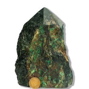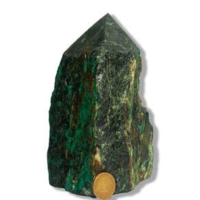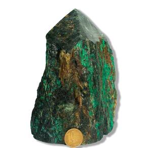 Malaquita Bruta com Base e Bico Serrado – Pedra Natural para Decoração e Uso Energético Dimensões e Peso Aproximado Peso por unidade: entre 3 a 4kgTamanho aproximado: 18 a 22cm Peça de grande porte, com presença imponente e visual marcante, ideal para decoração de destaque e ambientes sofisticados com pedras naturais. A Malaquita é uma pedra natural muito valorizada por sua coloração verde intensa e seus veios únicos, que criam desenhos exclusivos em cada peça. Neste formato bruto com base e bico serrados, proporciona estabilidade e forte impacto visual, sendo perfeita para decoração, colecionismo e revenda. Propriedades Energéticas e Simbólicas A Malaquita é tradicionalmente associada à proteção, transformação e renovação. Muito procurada por apreciadores de minerais, é ligada ao equilíbrio emocional, à coragem e ao fortalecimento pessoal. Usos Sugeridos\nDecoração de ambientes (casa, escritório, lojas) Colecionismo mineral Ambientes de meditação e bem-estar Consultórios e espaços terapêuticos Revenda de pedras naturais\nSeu formato com base serrada permite posicionamento firme em mesas, aparadores, balcões e vitrines, sendo uma peça de grande destaque no ambiente. Classificação por Qualidade – Tipo B Esta peça pertence à categoria Tipo B, apresentando excelente custo-benefício, com boa coloração e veios naturais, podendo conter variações de tonalidade, textura e pequenas marcas características da formação mineral. Características Técnicas\nPedra: Malaquita Natural Formato: Bruta com pé e bico serrado Faixa de peso: 3 a 4kg Tamanho aproximado: 18 a 22cm Classificação: Tipo B Acabamento: Base e bico com corte serrado Lapidação: Manual\nCuidados Para melhor conservação da peça, recomenda-se limpeza com pano seco ou levemente umedecido. Caso deseje realçar o brilho natural, pode-se aplicar pequena quantidade de óleo mineral. Observação Importante Por se tratar de um produto natural, cada peça possui características únicas de cor, veios, formato e textura. Pequenas fissuras, marcas e variações são naturais da pedra e não devem ser consideradas defeitos.