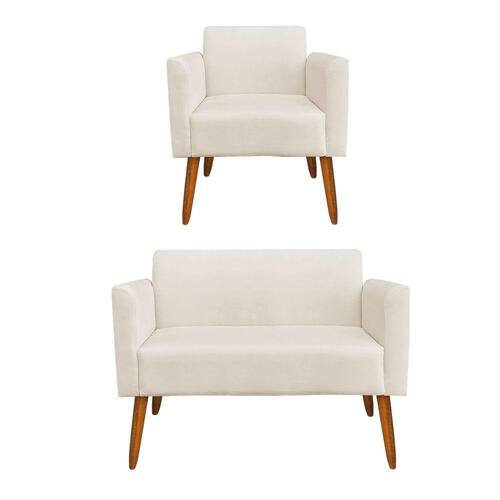 01 Namoradeira E 01 Poltrona Marisa Suede Bege