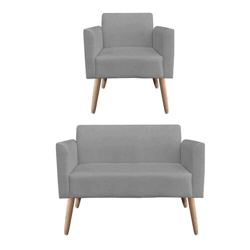Kit 01 Namoradeira e 01 Poltrona Marisa Suede Pés Palito Natural D'Rossi