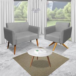 Kit 01 Namoradeira e 01 Poltrona Marisa Suede Grafite Base Giratória Madeira MA30 D'Rossi