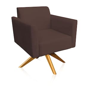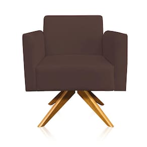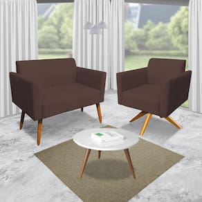 Kit 01 Namoradeira e 01 Poltrona Marisa Suede Marrom Base Giratória Madeira MA30 D'Rossi
