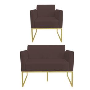 Kit 01 Namoradeira e 01 Poltrona Marisa Suede Base Industrial Metálica Dourado D'Rossi
