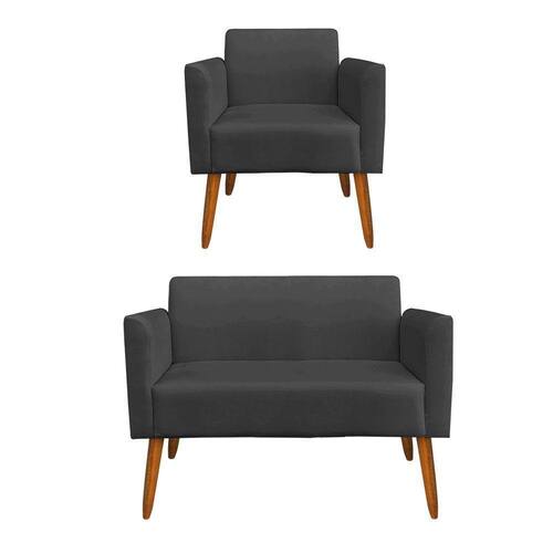 Kit 01 Namoradeira e 01 Poltrona Marisa Suede Pés Palito Castanho D'Rossi