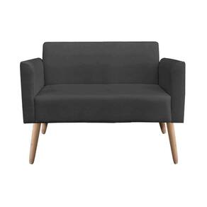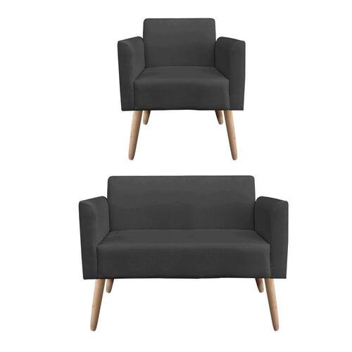 Kit 01 Namoradeira E 01 Poltrona Marisa Suede Pés Palito Natural Drossi -preto