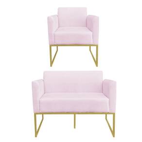 Kit 01 Namoradeira e 01 Poltrona Marisa Suede Base Industrial Metálica Dourado D'Rossi