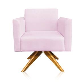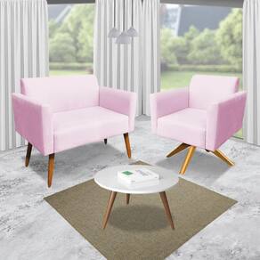 Kit 01 Namoradeira e 01 Poltrona Marisa Suede Rosa Bebê Base Giratória Madeira MA30 D'Rossi
