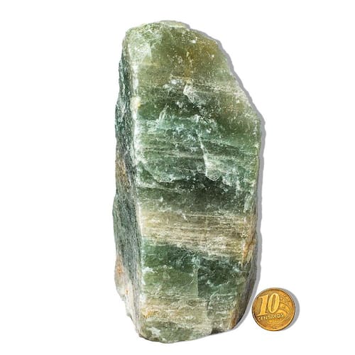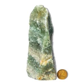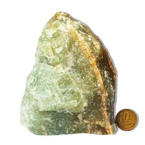 Ônix Verde Bruto com Base Serrada – Pedra Natural para Decoração e Bem-Estar Impressione com a beleza sólida e energética da Pedra Ônix Verde Bruto, uma peça marcante e imponente para decoração de ambientes internos ou externos. Sua base serrada proporciona estabilidade, permitindo que a pedra permaneça em pé com elegância, ideal para quem busca harmonia visual e um toque natural no espaço. Características da Pedra\nNome: Ônix Verde Natural\nCor: Verde profundo e uniforme\nFormato: Bruto com base plana (serrada) para apoio estável\nMedidas Aproximadas: 10 a 15cm (Média de 12,5cm)\nPeso Aproximado: 500 a 700g\nOrigem: Cristais de Curvelo – Minas Gerais, Brasil\nObservações: Por ser uma pedra natural, podem ocorrer variações em tonalidade, texturas e marcas superficiais que ressaltam sua autenticidade. A hidratação com óleo mineral é recomendada para preservar seu brilho.\nBenefícios e Aplicações Esta peça é altamente versátil, podendo ser utilizada em:\nDecoração sofisticada: ideal para salas, escritórios, halls ou áreas externas cobertas.\nAmbientes de meditação ou prática pessoal: contribui para a organização da energia e favorece ambientes mais calmos.\nEspaços comerciais: destaque para vitrines, recepções e consultórios.\nCuidados e Conservação\nEvite contato direto com água por períodos prolongados.\nRecomenda-se a aplicação periódica de óleo mineral para manter sua cor viva e superfície protegida.\nPor ser uma peça de grande porte, o manuseio deve ser feito com cuidado para evitar impactos.\nNota Final Cada peça de Ônix Verde é única – com padrões, camadas e nuances que só a natureza é capaz de criar. Essa é uma otima oportunidade de adquirir um exemplar genuíno, bruto e impactante para integrar beleza natural à sua rotina. Marca: Não Informado