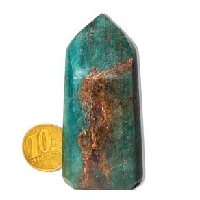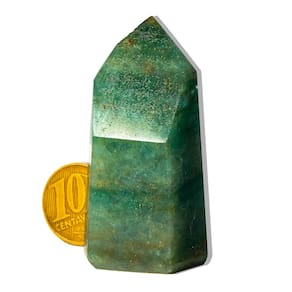 Ponta de Aventurina Verde: Prosperidade, Equilíbrio e Energia Positiva para o Seu Ambiente A Ponta de Aventurina Verde é uma verdadeira joia da natureza! Com seu tom verde suave e vibrante, ela traz beleza e significado ao seu espaço. Muito além de um item decorativo, essa pedra é conhecida por atrair prosperidade, estimular o equilíbrio emocional e renovar as energias ao seu redor. Características da Ponta de Aventurina Verde:\nNome da Pedra: Aventurina Verde\nCor: Verde Natural (Fotos ilustrativas – pode haver variações de tom)\nFormato: Ponta Sextavada (Gerador)\nMedidas Aproximadas: 5 a 6cm (varia conforme o estoque)\nPeso Médio: Entre 50 e 100g\nOrigem: Brasil\nTratamento: Hidratação com óleo mineral, preservando suas propriedades naturais\nPropriedades e Benefícios da Aventurina Verde:\nProsperidade e Abundância: Tradicionalmente conhecida como a “pedra da sorte”, a aventurina verde é associada à atração de oportunidades, prosperidade financeira e crescimento pessoal.\nRenovação das Energias: A aventurina age como um filtro energético, limpando o ambiente de negatividades e promovendo uma atmosfera mais leve e positiva.\nHarmonia e Vitalidade: Ideal para ambientes de descanso, trabalho ou meditação, sua vibração natural contribui para o bem-estar físico, mental e espiritual.\nBeleza e Decoração: Além de suas propriedades energéticas, a Ponta de Aventurina Verde é uma peça decorativa elegante, perfeita para salas, escritórios, consultórios ou altares espirituais.\nCuidado e Autenticidade: Por ser uma pedra natural, cada peça apresenta nuances únicas de cor, textura e pequenos veios internos – características que comprovam sua autenticidade e origem de garimpo. Importante: Pequenas inclusões, variações de tom ou marcas internas são normais em pedras naturais e não são consideradas defeitos. Conclusão: A Ponta de Aventurina Verde é mais do que um objeto decorativo: ela é um símbolo de renovação, sorte e harmonia. Traga a energia positiva desta pedra para o seu dia a dia e transforme o ambiente com equilíbrio e boas vibrações! Garanta a sua agora e sinta a diferença que a energia da Aventurina Verde pode fazer em sua vida! Marca: Não Informado