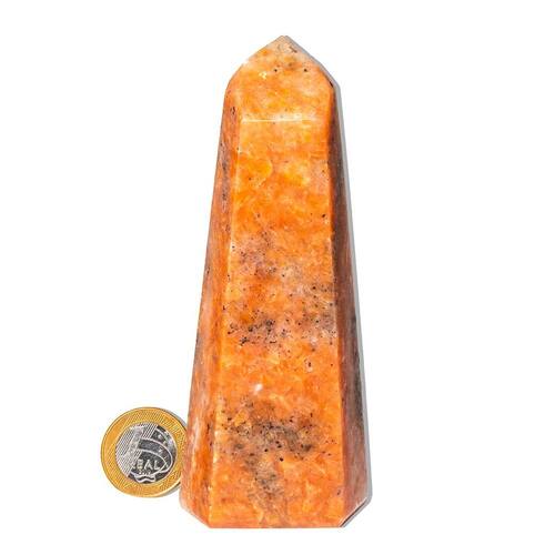 Ponta de Pedra Calcita Laranja - Energia Vibrante e Beleza Natural para Sua Decoração Descubra a magia da Calcita Laranja! Com suas cores intensas e vibrantes, a ponta de pedra calcita laranja é perfeita para decorar qualquer ambiente, trazendo energia positiva, criatividade e bem-estar. Transforme sua casa ou escritório com essa pedra única e aproveite seus benefícios espirituais e energéticos. Características do Produto:\nNome da Pedra: Calcita Laranja\nCor da Pedra: Laranja vibrante (Foto ilustrativa)\nCorte: Ponta Sextavada (gerador)\nClaridade: Densa e brilhante, com qualidade superior\nTamanho da Pedra: Entre 13 e 14 cm\nPeso: 500 a 700g (Pode variar)\nOrigem: Brasil\nCuidados: Hidratação com óleo mineral para manter o brilho\nPor Que Escolher a Calcita Laranja? A Calcita Laranja é uma pedra natural fascinante que combina beleza e benefícios espirituais. Sua cor laranja intensa é resultado da presença de minerais como ferro, tornando-a não apenas um item de decoração, mas também uma aliada poderosa para quem busca equilíbrio emocional, motivação e bem-estar. Benefícios Energéticos e Espirituais:\nAumenta a criatividade e motivação: Perfeita para quem precisa de um impulso de energia para alcançar seus objetivos.\nEquilíbrio emocional: Associada ao chakra sacral, ajuda a restaurar o equilíbrio das emoções, proporcionando uma sensação de paz e harmonia.\nCura espiritual: Excelente para meditação, visualização e fortalecimento da intuição, permitindo um crescimento pessoal profundo.\nDecoração e estilo: Além de seus benefícios energéticos, a Calcita Laranja traz um toque único de beleza natural para qualquer espaço.\nA Calcita Laranja na Sua Casa ou Escritório Com seu formato elegante e cores vibrantes, a Calcita Laranja é ideal para decoração de interiores. Coloque-a em sua mesa, prateleira ou estante, e ela será um ponto de energia que ilumina qualquer ambiente. Pode também ser utlizada em joalheria artesanal, proporcionando um toque sofisticado e cheio de energia positiva. Importante: Por ser uma pedra natural, a Calcita Laranja pode apresentar variações de tonalidade e pequenas inclusões, características típicas de minerais autênticos. Essas variações não afetam a beleza ou qualidade da pedra, mas a tornam ainda mais única. Garanta a Sua Calcita Laranja e Traga Mais Energia ao Seu Espaço! Não perca a oportunidade de adicionar essa beleza natural e energia positiva à sua vida. Clique aqui para comprar agora e experimente o poder da Calcita Laranja em sua decoração e no seu bem-estar. Por que comprar com a gente?\nProduto 100% natural e garantido.\nEntrega rápida e segura para todo o Brasil.\nAtendimento especializado para tirar suas dúvidas e ajudar na sua escolha.\nFAQ (Perguntas Frequentes): 1. A Calcita Laranja pode ser utilizada para meditação?Sim, a Calcita Laranja é ideal para práticas de meditação, estimulando a criatividade e o equilíbrio emocional, além de auxiliar no fortalecimento da intuição. 2. Como posso usar a Calcita Laranja na decoração?Coloque-a em mesas, estantes, ou como parte de uma coleção de cristais. Sua cor vibrante e formato sofisticado trazem energia positiva ao ambiente. 3. A Calcita Laranja substitui tratamentos médicos?Não, a Calcita Laranja pode ser um complemento valioso para o bem-estar emocional e espiritual, mas não substitui tratamentos médicos convencionais.