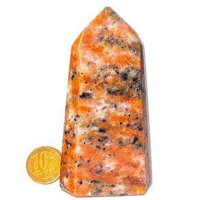 Ponta de Pedra Calcita Laranja - Energia Vibrante e Beleza Natural para Sua Decoração Descubra a magia da Calcita Laranja! Com suas cores intensas e vibrantes, a ponta de pedra calcita laranja é perfeita para decorar qualquer ambiente, trazendo energia positiva, criatividade e bem-estar. Transforme sua casa ou escritório com essa pedra única e aproveite seus benefícios espirituais e energéticos. Características do Produto:\nNome da Pedra: Calcita Laranja\nCor da Pedra: Laranja vibrante (Foto ilustrativa)\nCorte: Ponta Sextavada (gerador)\nClaridade: Densa e brilhante, com qualidade superior\nTamanho da Pedra: 9 a 10cm\nPeso: 200 a 250g (Pode Variar)\nOrigem: Brasil\nCuidados: Hidratação com óleo mineral para manter o brilho\nPor Que Escolher a Calcita Laranja? A Calcita Laranja é uma pedra natural fascinante que combina beleza e benefícios espirituais. Sua cor laranja intensa é resultado da presença de minerais como ferro, tornando-a não apenas um item de decoração, mas também uma aliada poderosa para quem busca equilíbrio emocional, motivação e bem-estar. Benefícios Energéticos e Espirituais:\nAumenta a criatividade e motivação: Perfeita para quem precisa de um impulso de energia para alcançar seus objetivos.\nEquilíbrio emocional: Associada ao chakra sacral, ajuda a restaurar o equilíbrio das emoções, proporcionando uma sensação de paz e harmonia.\nCura espiritual: Excelente para meditação, visualização e fortalecimento da intuição, permitindo um crescimento pessoal profundo.\nDecoração e estilo: Além de seus benefícios energéticos, a Calcita Laranja traz um toque único de beleza natural para qualquer espaço.\nA Calcita Laranja na Sua Casa ou Escritório Com seu formato elegante e cores vibrantes, a Calcita Laranja é ideal para decoração de interiores. Coloque-a em sua mesa, prateleira ou estante, e ela será um ponto de energia que ilumina qualquer ambiente. Pode também ser utlizada em joalheria artesanal, proporcionando um toque sofisticado e cheio de energia positiva. Importante: Por ser uma pedra natural, a Calcita Laranja pode apresentar variações de tonalidade e pequenas inclusões, características típicas de minerais autênticos. Essas variações não afetam a beleza ou qualidade da pedra, mas a tornam ainda mais única. Garanta a Sua Calcita Laranja e Traga Mais Energia ao Seu Espaço! Não perca a oportunidade de adicionar essa beleza natural e energia positiva à sua vida. Clique aqui para comprar agora e experimente o poder da Calcita Laranja em sua decoração e no seu bem-estar. Por que comprar com a gente?\nProduto 100% natural e garantido.\nEntrega rápida e segura para todo o Brasil.\nAtendimento especializado para tirar suas dúvidas e ajudar na sua escolha.\nFAQ (Perguntas Frequentes): 1. A Calcita Laranja pode ser utilizada para meditação?Sim, a Calcita Laranja é ideal para práticas de meditação, estimulando a criatividade e o equilíbrio emocional, além de auxiliar no fortalecimento da intuição. 2. Como posso usar a Calcita Laranja na decoração?Coloque-a em mesas, estantes, ou como parte de uma coleção de cristais. Sua cor vibrante e formato sofisticado trazem energia positiva ao ambiente. 3. A Calcita Laranja substitui tratamentos médicos?Não, a Calcita Laranja pode ser um complemento valioso para o bem-estar emocional e espiritual, mas não substitui tratamentos médicos convencionais.