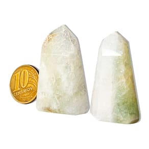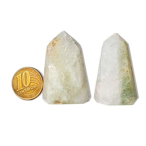 Nome: Prasiolita (Ametista Verde) Cor: Verde suave predominante Corte: Pontinha lapidado Claridade: Cristalizado, com transparência natural Medidas: 30 a 40mm Peso Total: 20 a 30g Média 25g Origem: Montezuma, MG, Brasil, Estados Unidos, Canadá, Polônia, Rússia, Namíbia, Madagascar e Sri-Lanka.