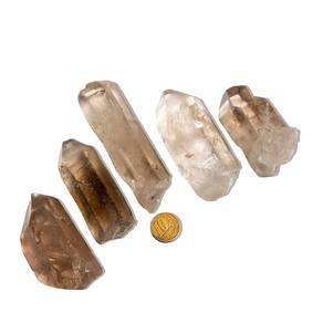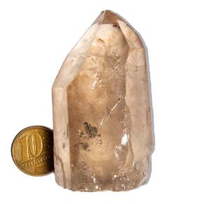 Nome: Ponta Quartzo Toque Fumê Bruto Cor: Fumê, com tonalidades que vão do claro ao escuro Corte: Bruto Natural (Como Saiu do Garimpo) Claridade: Semi Cristalizado, Brilhoso e Esfumaçado Medidas: 7 a 10cm Peso: 100 a 150g Origem: Garimpos de Minas Gerais, Brasil