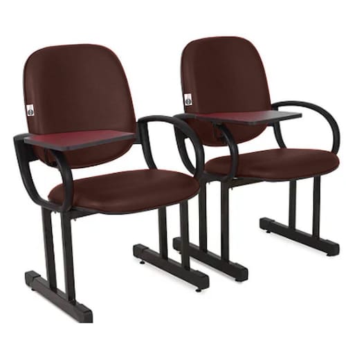 02 Cadeiras para Auditório, Cinemas, Teatros, Escolas e Faculdades com Prancheta Linha Dallas Auditório - Tonalidade da Cor do Assento e Encosto: Vermelho Vinho  - Marca: Design Office Móveis - Revestimento do Assento e Encosto: Material Sintético    A Cadeira para Auditório com Prancheta Linha Dallas Auditório  da marca Design Office Móveis, foi projetada para proporcionar conforto e bem estar, tornando o dia-a-dia mais agradável. Utilizado para compor diversos tipos de ambientes a Linha Dallas Auditório da marca Design Office Móveis são modelos de cadeiras para Auditório, salas de convenção, empresas de treinamento, auditórios e ambientes corporativos, com medidas avantajadas, ergonômicas e confortáveis, que se diferenciam de modelos de cadeiras para auditórios convencionais existentes no mercado, de fabricação nacional com qualidade e garantia de 1 ano, direcionado para: cinemas, teatros, hotéis, empresas de treinamento,cursinhos, pousadas, escolas,hotel, auditórios, ambientes corporativos e empresas em geral.   A Cadeira para Auditório é entregue totalmente montada, sem a necessidade de qualquer montagem adicional, é só tirar da caixa e sentar-se, você não terá o trabalho de ler díficeis manuais de montagem e nem de perder muitas horas em meio a diversos parafusos e peças, nós fazemos isso para você.   Este anúncio contempla 02 unidades de cadeiras para auditório com prancheta.   Medidas abaixo por assento:    Assento: L49 x P48Encosto: L46 x A48Altura total: 840 mmAltura do assento: 470 mmLargura com braços:  60 cmLargura total com prancheta:  66 cmProfundidade com assento rebatido: 530 mmProfundidade com assento armado: 690 mmAssento rebatível**Medidas aproximadas, podendo haver variações**     Marca: Design Office Móveis  Revestimento do Assento e Encosto: Material Sintético   Garantia: 12 Meses/1 ano cobrindo defeitos de fabricação.  **Medidas aproximadas, podendo haver variações**   Observações Importantes: As medidas descritas nesse anúncio são aproximadas podendo sofrer pequenas variações sendo maiores ou menores.   As cores das fotos do produto são meramente ilustrativas, a tonalidade da cor pode sofrer alterações sendo mais clara ou mais escura.   Ao receber a mercadoria efetuar a conferência. Confira as dimensões do produto e certifique-se de que passará normalmente por elevadores, portas, escadas ou corredores de sua residência.