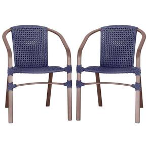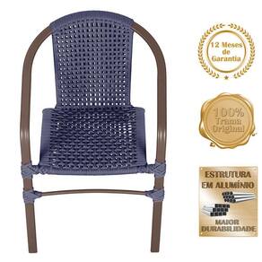 02 Cadeiras Floripa Alumínio Pintura Marrom Trama Azul