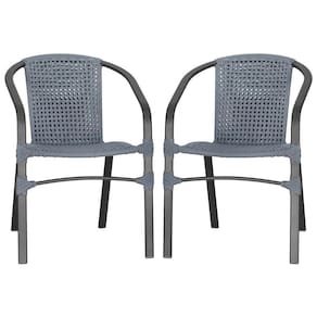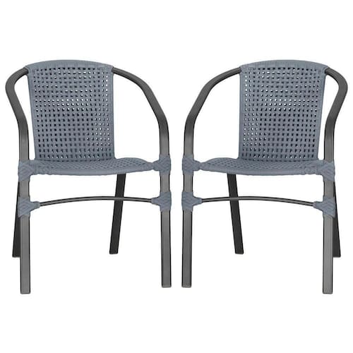 02 Cadeiras Floripa Alumínio Pintura Preta Trama Prata