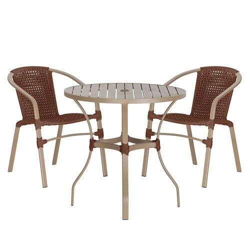 Composto por cadeiras de aluminio tramadas em corda nautica e uma elegante mesa com tampo ro, esse conjunto une sofisticacao e resistencia em cada detalhe.