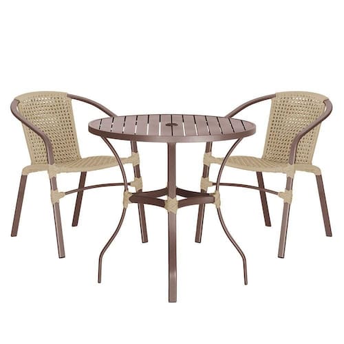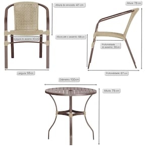 Composto por cadeiras de aluminio tramadas em corda nautica e uma elegante mesa com tampo ro, esse conjunto une sofisticacao e resistencia em cada detalhe.