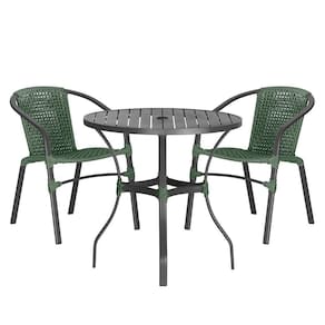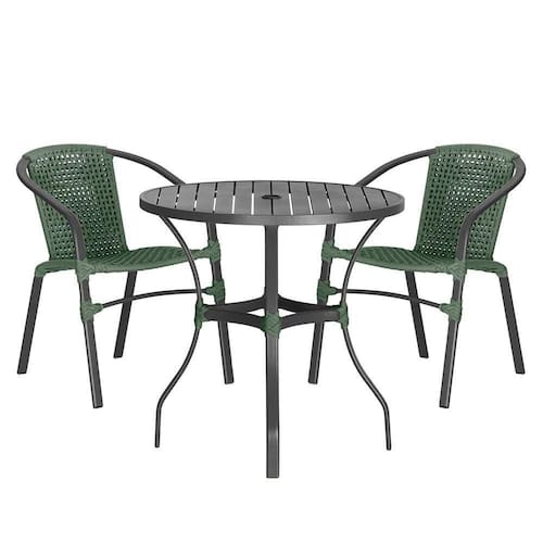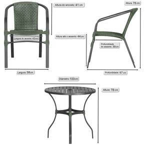 02 Cadeiras Floripa E Mesa Roma 100cm Preta Trama Verde