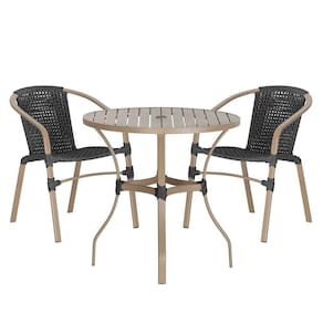 02 Cadeiras Floripa E Mesa Roma 80cm Fendi Trama Preto