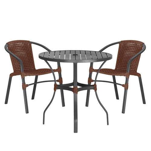 02 Cadeiras Floripa E Mesa Roma 80cm Preta Trama Marrom