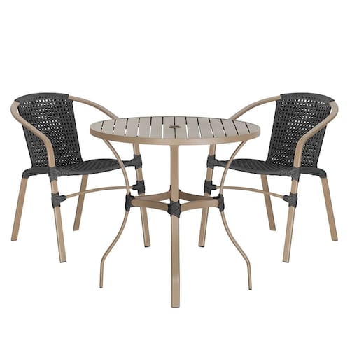Composto por cadeiras de alumínio tramadas em corda náutica e uma elegante mesa com tampo ripado, esse conjunto une sofisticação e resistência em cada detalhe.