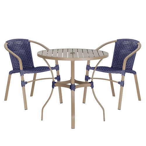 Composto por cadeiras de alumínio tramadas em corda náutica e uma elegante mesa com tampo ripado, esse conjunto une sofisticação e resistência em cada detalhe.