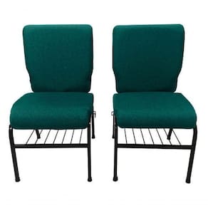 02 UNIDADES de Cadeiras para Igrejas com porta Bíblia e porta Cálice da Santa Ceia Com Gancho lateral para acoplar em outra cadeira - Modelo Diretor Linha Igreja Cor: Verde - Tonalidade da Cor: Verde - Marca: Design Office Móveis
