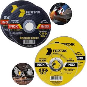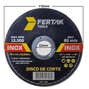 Disco Corte Metal Aço Inox Ferro Esmerilhadeira 115x1x22mm Fertak
