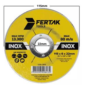 Disco de Desbaste Metal Aço Ferro Inox 115x22mm Fertak