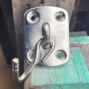 Gancho de Rede de alta qualidade, melhor acabamento do mercado, não enferruja e de grande durabilidade. Ideal para instalaçao em Alvenaria, Madeira, Ferro entre outros. Pode ser utilizado também em teto para fixação de cadeiras de balanço, sacos de boxe, enfeites e etc
